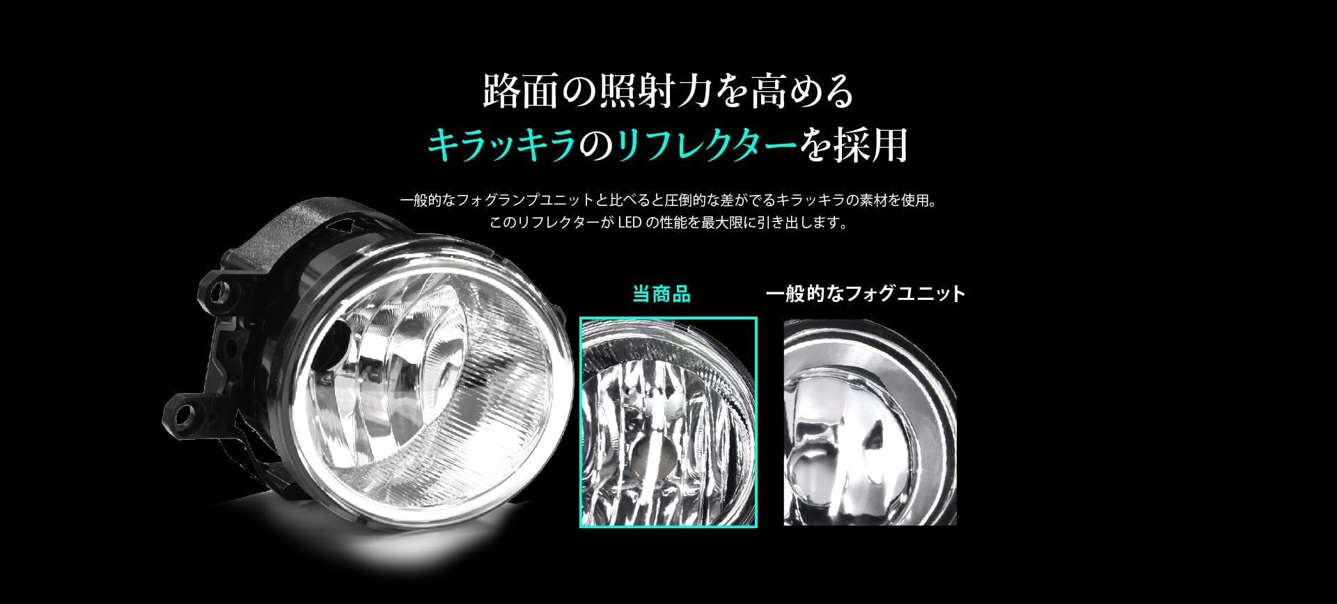 純正LEDフォグランプによる明るさに不満のある方必見!純正LED、純正ハロゲンどちらからの交換でも抜群の配光を発揮し、照射力もキラッキラのリフレクターにより大幅アップ!