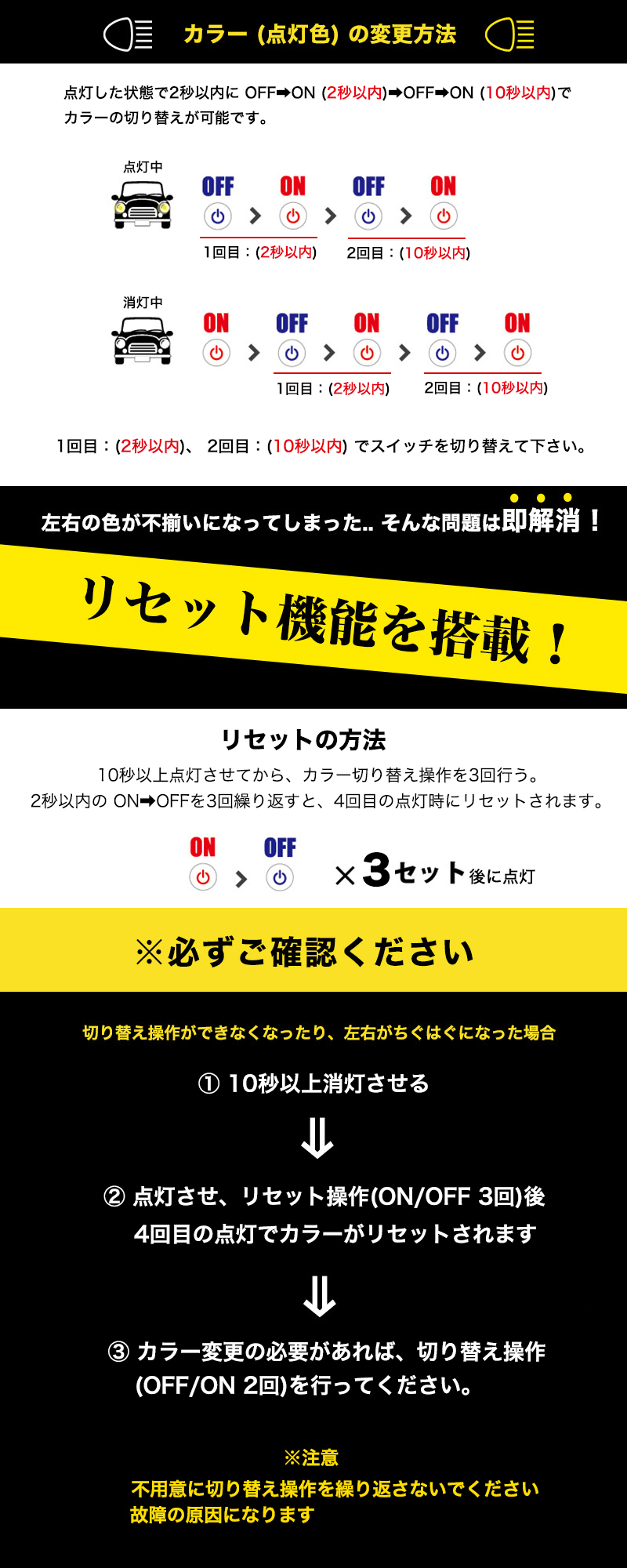 ※ホワイト , イエロー点灯時のみ車検対応