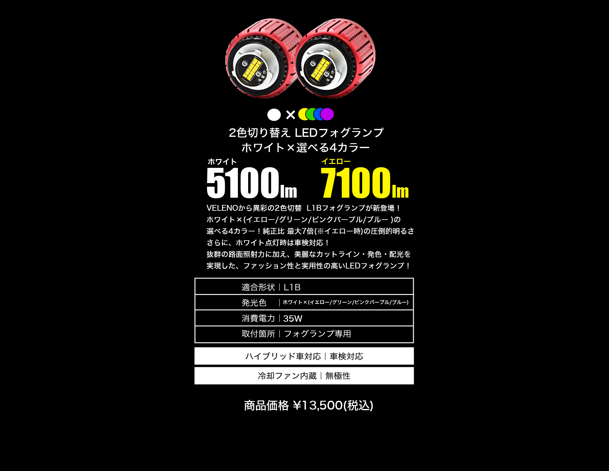 2色切り替え LEDフォグランプ 5100lm ホワイト × 7100lm イエロー