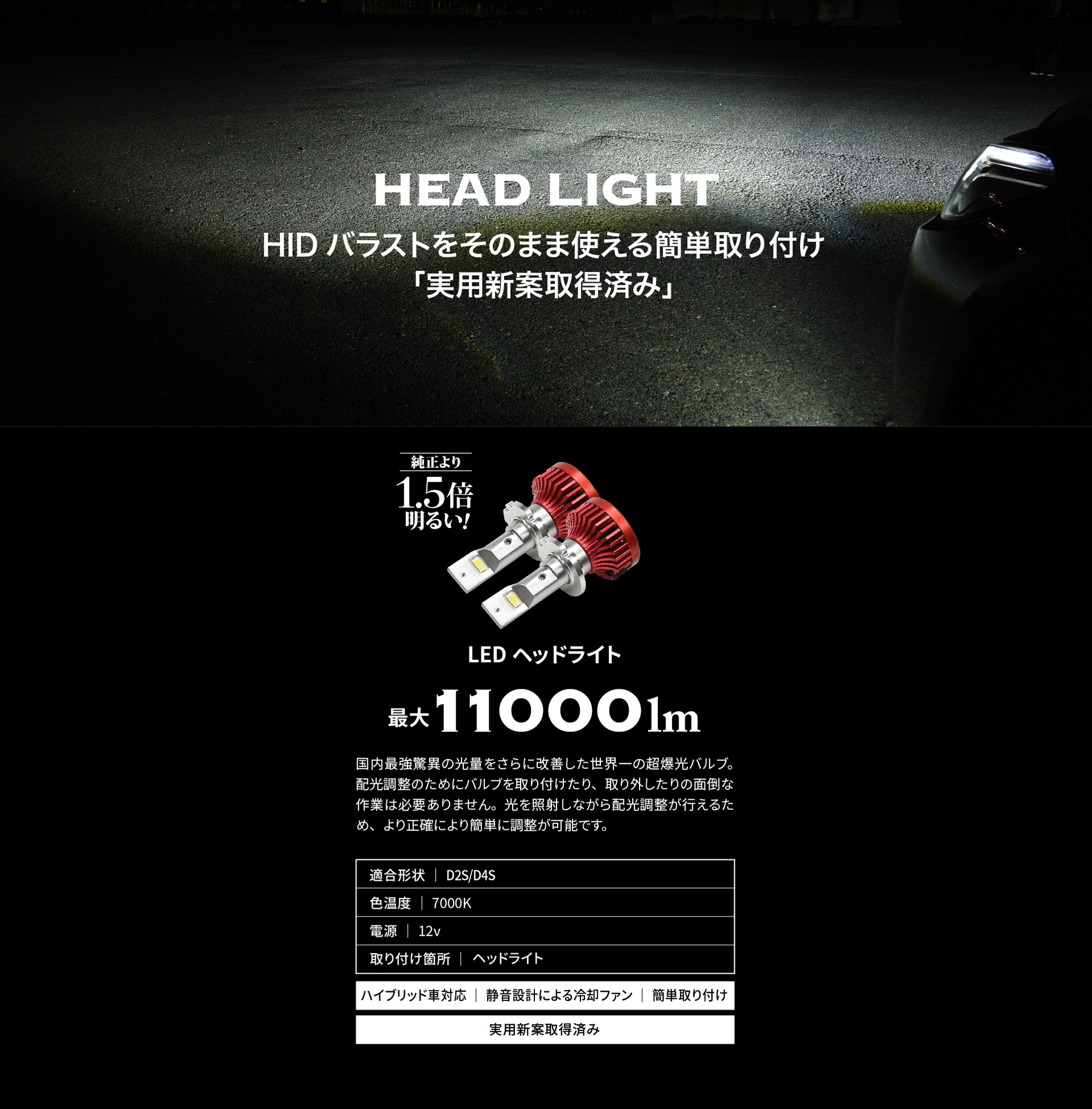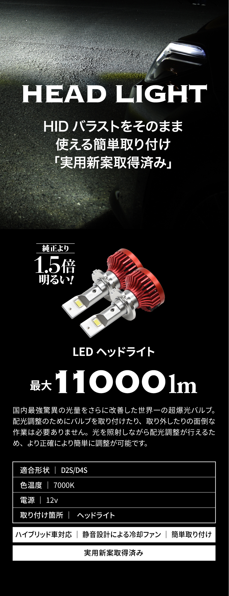 LEDヘッドライト11000lm D2S/D4S