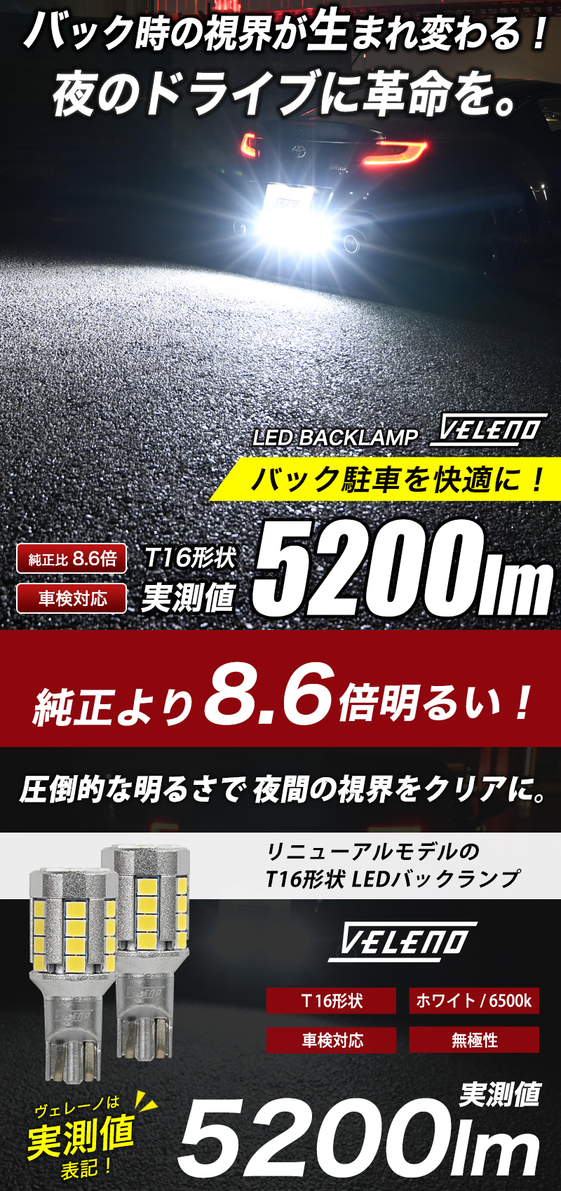 LED バックランプ T16 5200lm
